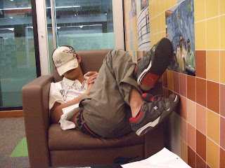 was so totally zonked out la me and marce cos we woke up damn early today and slept late ytd.